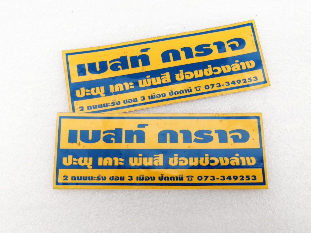 เรามักจะติดสติ๊กเกอร์ในลักษณะแบบนี้ให้กับลูกค้าเมื่อสมัยก่อน โดยอายุอานามของสติ๊กเกอร์ก็น่าจะอยู่ที่ 20 ปีได้แล้ว โดยได้มีการปรับเปลี่ยนเป็นรูปแบบอื่นๆ ให้ทันสมัยตามยุคมาโดยตลอด